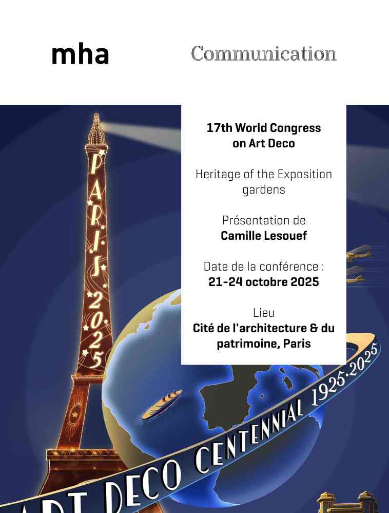 Résumé : The ephemeral gardens of the 1925 Exposition marked a turning point in the popularization of a modern and French garden style. These gardens, often referred to as « Art Deco gardens, » influenced the creation of parks and gardens in France and internationally during the interwar period. The Exposition served as a springboard for architects and landscape architects such as Gabriel Guévrékian, Joseph Marrast, and the Vera brothers, offeri ng them increased visibility and opportunities for public and private projects. This conference, based on Parisian archives, analyzes the legacy and posterity of the gardens of the 1925 Exposition. It relies on a corpus of gardens designed by Gabriel Guévrékian, Joseph Marrast, Albert Laprade, the Vera brothers, and Jacques Gréber between 1925 and 1939 in France and the United States. The aim is to highlight the raie of these individuals in the legacy of the Exhibition/Exposition gardens, and the way in which they adapted their creations to new commissions, sites, climates and so on.