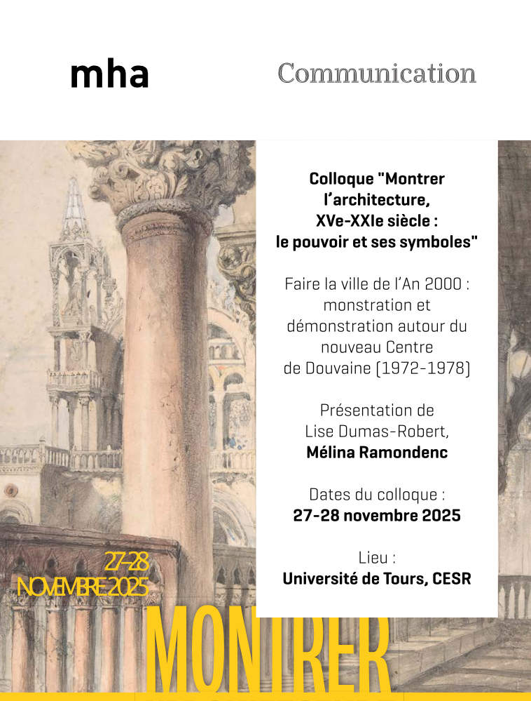 Communication Lise Dumas-Robert, architecte DE-DSA Architecture et Patrimoine de l’Ensa Paris-Belleville, agence Archipat et Mélina Ramondenc, architecte DE, docteure en architecture, laboratoire MHA, ENSA Grenoble-Université Grenoble Alpes, dans le cadre du colloque « Montrer l’architecture, XVe-XXIe siècle : le pouvoir et ses symboles »
